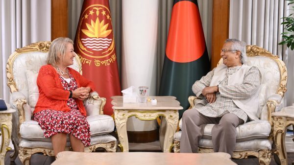 আলী আহসান রবি :- যুক্তরাজ্যের বাণিজ্য দূত রোজি উইন্টারটন বৃহস্পতিবার রাষ্ট্রীয় অতিথি ভবন যমুনায় প্রধান উপদেষ্টা অধ্যাপক মুহাম্মদ ইউনূসের সাথে সাক্ষাৎ করেছেন বাণিজ্য, বিনিয়োগ এবং দ্বিপাক্ষিক সহযোগিতার বিষয়ে বিস্তৃত আলোচনার জন্য। বিমানবন্দর ব্যবস্থাপনা, পরিষ্কার জ্বালানি এবং নিউইয়র্কে জাতিসংঘের সাধারণ পরিষদে